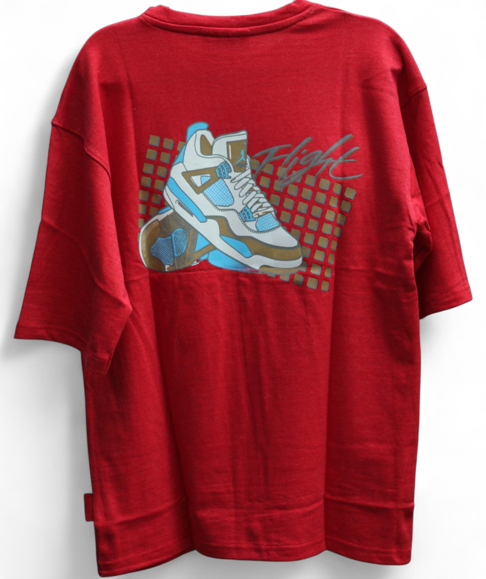 🆕 Step into the street in serious style with this bold red Flight tee, designed for sneakerheads and statement-makers.