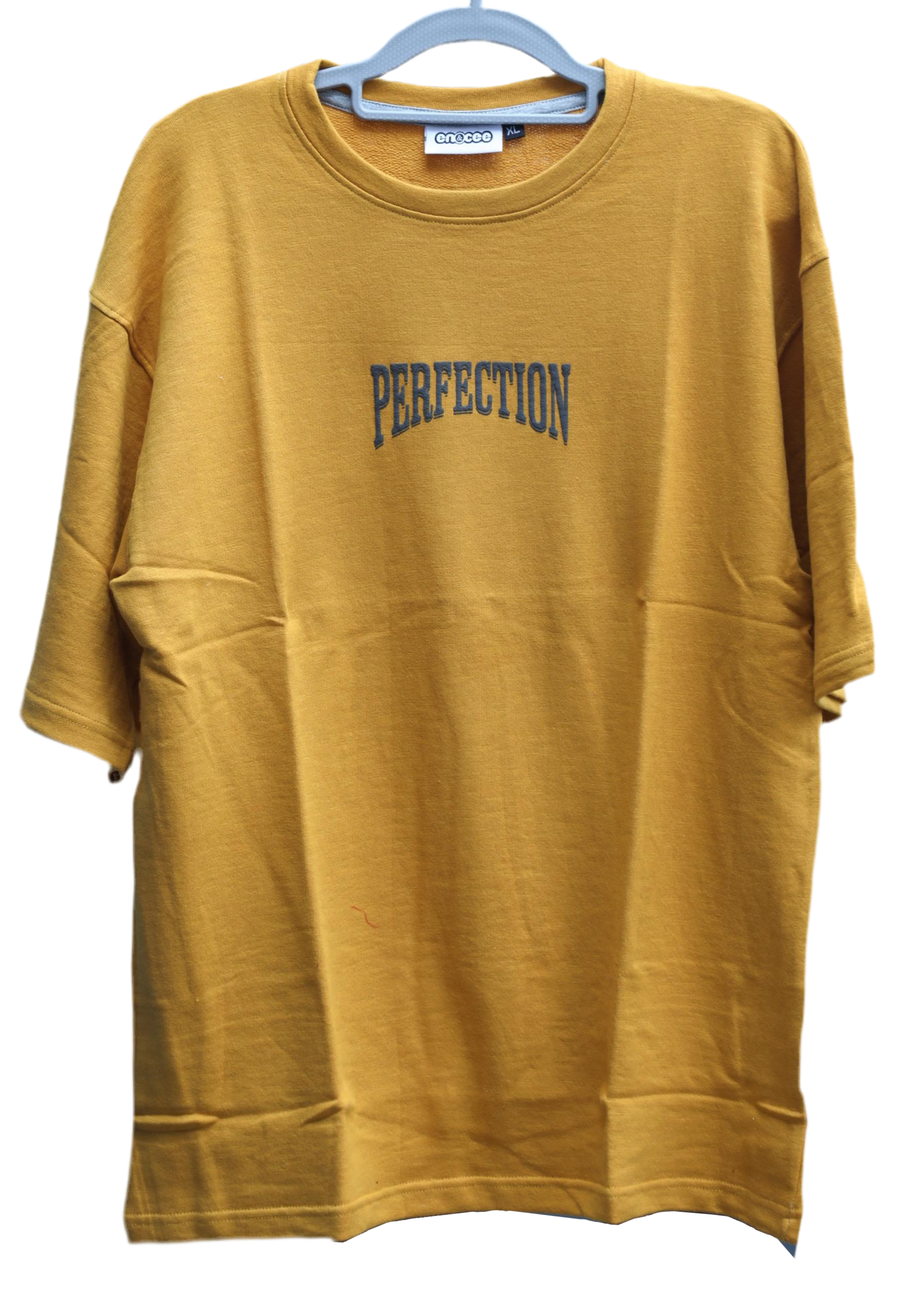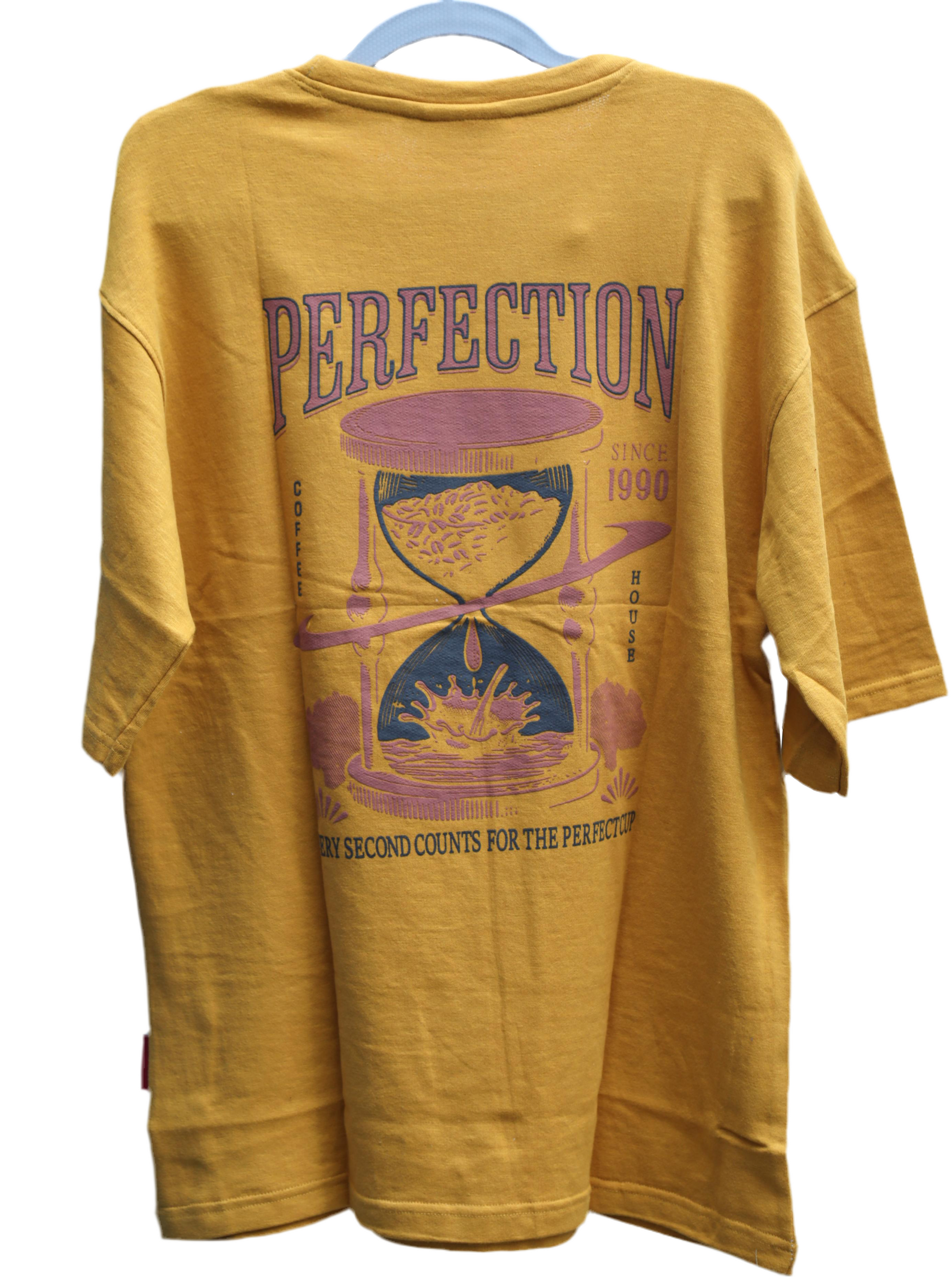 A clean and confident “PERFECTION” print in a classic serif font — understated yet striking.